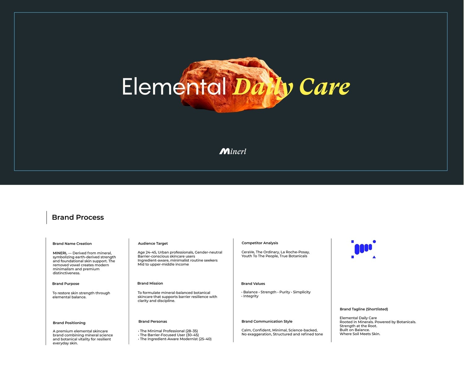 MINERL emerges as a differentiated skincare brand built on clarity, performance, and resilience. The identity establishes immediate credibility while enabling long-term scalability, positioning the brand to compete effectively in a global market and creating a foundation for sustained growth and expansion.