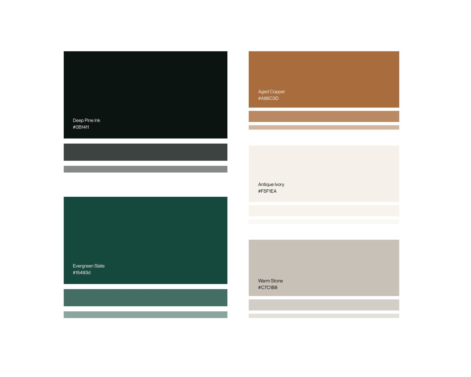 The identity system is designed to express calm authority and structured thinking, combining editorial precision with institutional presence. A minimal, typography-led approach reinforces clarity, while refined color and layout systems support high-trust communication. The result is a brand that feels established, credible, and built for executive environments.